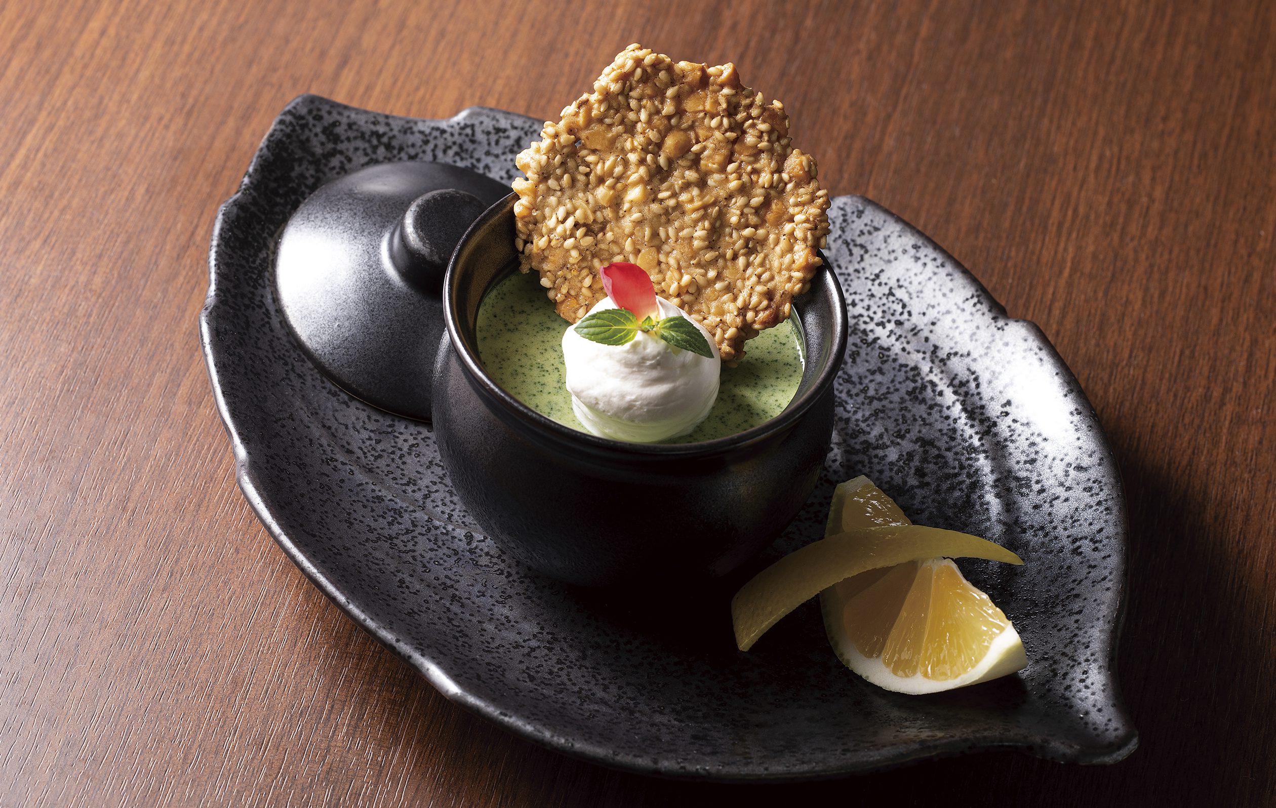 金ごまのチュイルを添えて
