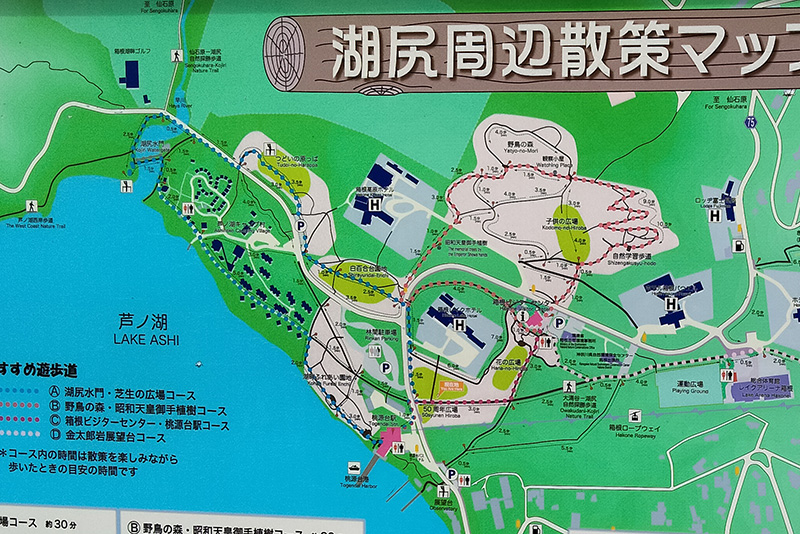 まずは芦ノ湖湖畔を歩き「湖尻水門」「深良水門」を巡る平坦なコースでゆっくり芦ノ湖を堪能。