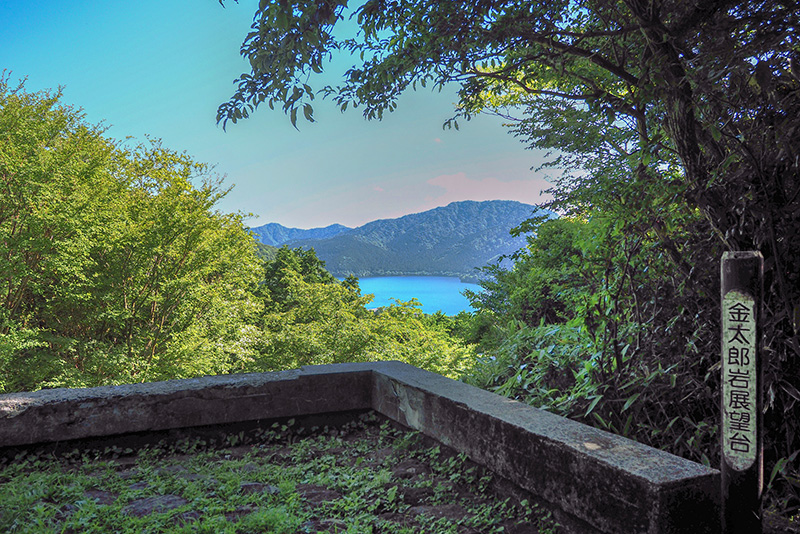 ホテルからロープウェイ姥子駅に続く道沿いにひっそり存在する小道。約30分の小道を抜けると芦ノ湖を望む小さな展望台に到着。朝のお散歩がてら芦ノ湖眺望をひとりじめ♪