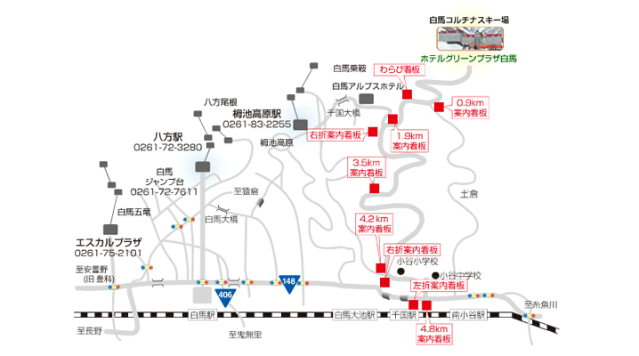 ※白馬駅、八方バスターミナル、その他のHAKUBAVALLEYスキー場への移動はHVシャトルバスをご利用下さい。