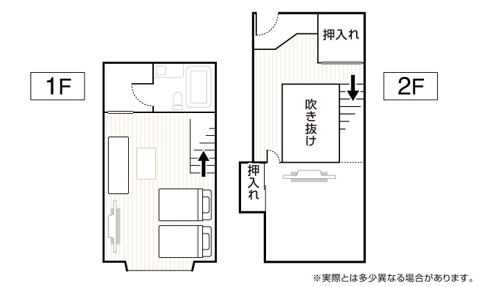 ※こちらのお部屋メゾネットタイプ(入口1階)にあり、1階にベッド2台、