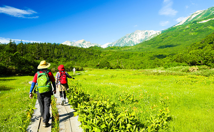 どこまでも続くような青空と爽やかな緑、華麗な高山植物や花々に出会える白馬エリアには、 『栂池自然園』や『八方アルペンライン』、『八方尾根』『白馬岩岳マウンテンリゾート』といった 初心者にも手軽にトレッキングを楽しめるスポットが満載!夏季は『五竜高山植物園』や『岩岳ゆり園』など花々が咲き誇る観光スポットも おすすめです。八方尾根では雄大な白馬連峰が目の前に迫る圧巻の絶景や、八方池の神秘的な美しさを ご覧いただけます。栂池自然園ではミズバショウやニッコウキスゲなど貴重な植物、間近に望む白馬岳の 大雪渓をお楽しみいただけます。新スポットの白馬マウンテンリゾートはインスタ映えもする観光地! ゆったりとコーヒーを飲みながら過ごすのも◎!秋は初雪の白色、紅葉の赤色、針葉樹の緑色の三色からなる幻想的な 「白馬三段紅葉」が有名な白馬。山麓には草紅葉と共にコスモスなどの花が咲き誇り、秋の深さを感じさせます。 色鮮やかな紅葉のみならず、八方尾根では山々の稜々とした岩肌なども見ることが出来ます。圧倒的なスケールで 広がる大パノラマを思う存分堪能してください。
