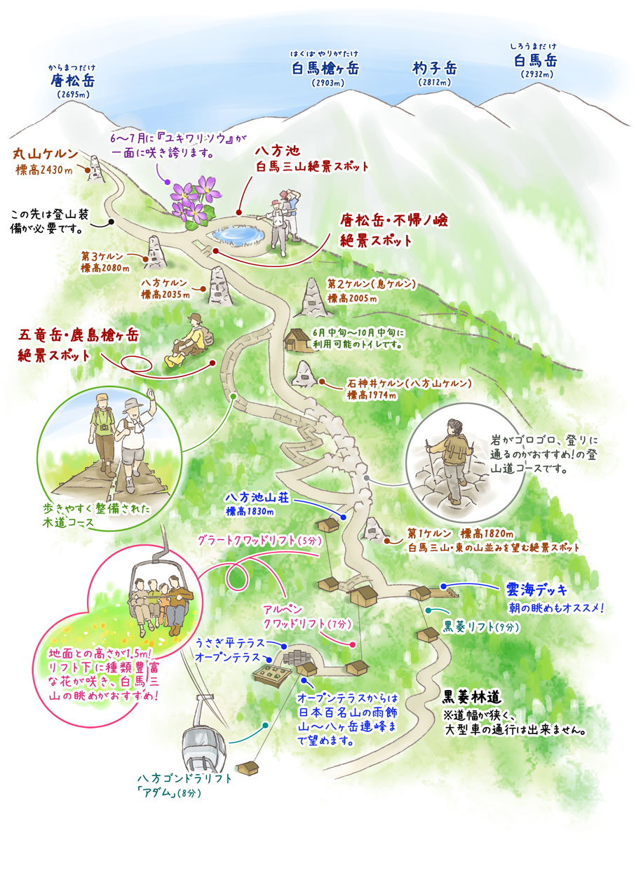- ▶ 八方尾根自然研究路トレッキングコースコース