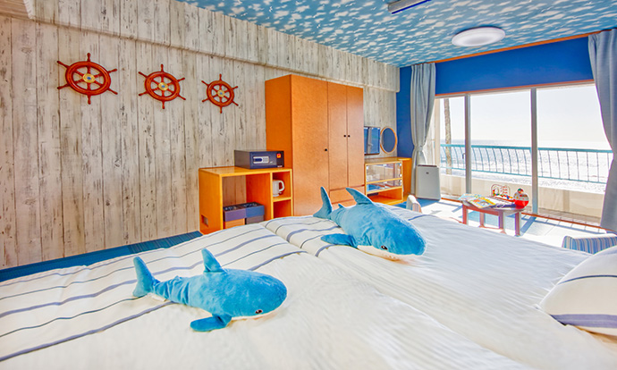 オーシャンビューと波の音が聞こえるお部屋を、お客様の旅の思い出の1ページに。和洋室、和室、キッズルーム、テラス付和モダン、テラス付大部屋和室からお選びいただけます。