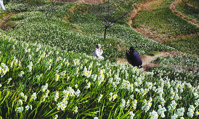 例年12月中旬~1月末にかけてが水仙の見ごろ。見ごろを迎える時期には、毎年「水仙まつり」を開催。期間中は、ロード沿いで地元の農産物・水仙の花の販売などが行われます。