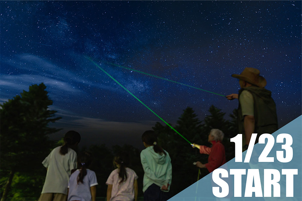 冬の澄んだ星空をガイドと一緒に眺めよう!期間中、宿泊の当日の夜に2回公演で実施される星空観賞会。冬の大三角形などその時見える星空で約20分にわたりガイドが解説致します。