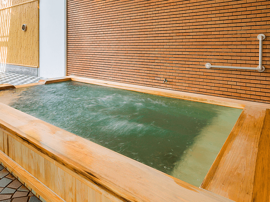 大浴場「湯プラザ」の開放感あふれる温泉露天風呂で、