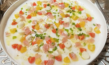 インドネシアでは人気の「サテ(Sate)」をシディクさんが作るインドネシア風焼き鳥としてアレンジしてご提供していいます。本場では串差しにして炭火でじっくりとピーナッツソースを使用しますが、バイキングでも食べやすいよう工夫をして、風味豊かに仕上げております。