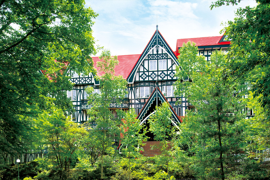 赤い三角屋根が特徴のホテルグリーンプラザ軽井沢、